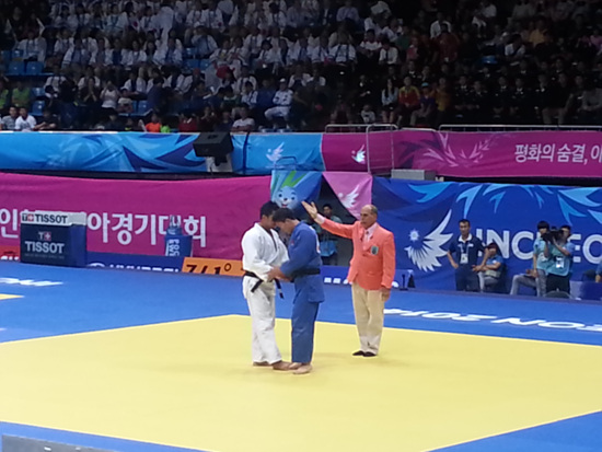 김재범과 박홍위가 맞붙은 남북전에서는 “우리는 하나다”를 외치며 “코리아 이겨라”고 응원했다.