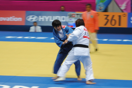 세계랭킹 6위인 정경미는 지난해 세계선수권 우승자인 북한의 설경(24·랭킹 11위)을 맞아 지도승을 거두고 한국 여자유도 역사상 첫 아시안게임 2연패를 달성했다.
