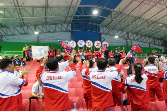 민족이 만나는 순간, 통일은 현실이 되는 것 같다. 첫 응원부터 이렇게 뜨거운데 마지막 응원 때는 어떨까.