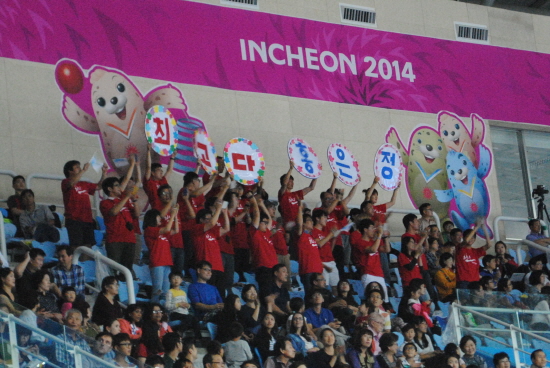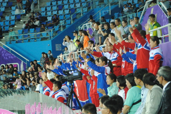 인천아시안게임 남·녀 각 개별종목 결승경기가 열린 인천 남동체육관에서 24일 네번째 북의 '애국가'가 울려퍼졌다.