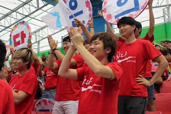 오늘은 금, 은, 동이 모두 북측에 안겨진 날이었다. 시상식에 오른 북측 선수의 이름을 외치면서 우리 겨레가 하나가 된다면 더 큰 스포츠강국이 될 텐데 아쉬운 마음이 밀려왔다. ‘우리는 하나’라는 노래를 부르기 시작하자, 북측 선수를 응원하기 위해 온 북측 선수단, 관계자들이 함께 따라 부르기 시작했다. 가슴이 뭉클한 순간이었다.
