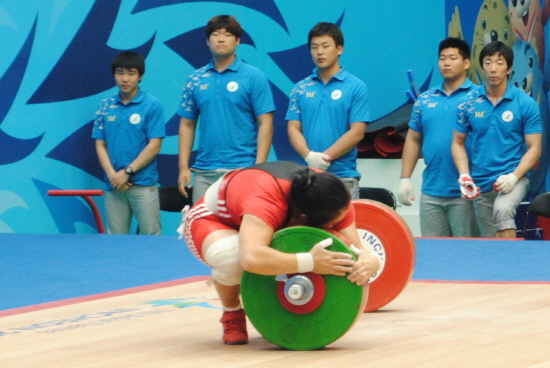 캉유에는 김은주와 아시안게임 신기록을 갱신해가며 엎치락 뒤치락 막판까지 접전을 벌였으나 용상 3차 시기에서 바벨을 놓쳐 은메달로 만족해야 했다.