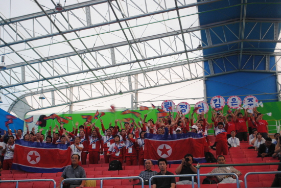 북측 코치들은 두 선수가 경기장에 입장할 때 '힘차게', '잘해보라' 등의 기합으로 기운을 북돋웠으며, 이미 경기를 마친 다른 체급 선수들과 임원들은 공동응원을 위해 매번 자리를 함께하는 아리랑응원단과 주거니 받거니 환호성을 질렀다.