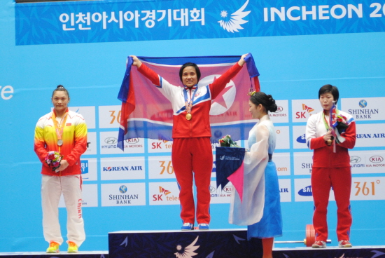 인천아시안게임 엿새째를 맞는 25일 북측 선수단은 역도와 기계체조에서 각각 1개씩 두 개의 금메달을 보태며 대회 초반을 순조롭게 순항하고 있다.