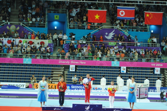 한편, 이날 남동체육관에서 진행된 기계체조 여자평균대에 출전한 김은향 선수도 시상대에서 금메달의 영광을 누렸다.