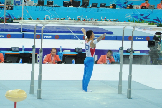 남자평행봉 경기에서는 남측 박민수와 북측 김진혁이 큰 실수없이 깔끔한 마무리를 선보였으나 나란히 5, 6위를 차지하는데 그쳤다.