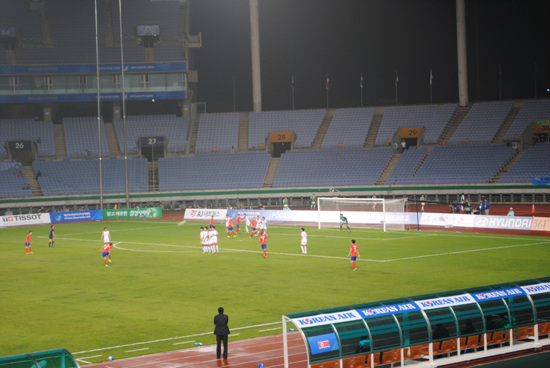 경기가 2-1로 북측이 이기며 끝나자, 장내 아나운서가 “양팀 선수들에게 격려의 박수를 부탁드립니다”고 멘트를 날려, 관중들은 일제히 남북 선수들에게 아낌없는 박수와 환호를 보냈다.