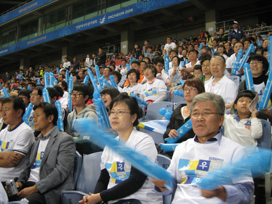 관중들은 남측을 응원했지만 일방적으로 하지는 않고 북측의 멋진 슈팅과 페어 플레이에도 박수를 보냈다.