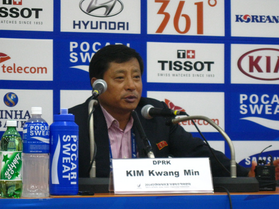 ■ 끝나고 김광민 감독하고 나는 "우승했으면 좋겠다. 금메달 땄으면 좋겠다"고 이야기했다. 김광민 감독은 "많이 좋았다. 남측도 상당히 실력이 좋아졌다"고 이야기했다. 개인적인 이야기지만, 나도 나름대로 준비했고, 북측 선수단도 마찬가지고 굉장히 아쉬운 면이 있지만 아쉬움을 접고 새로운 준비를 해야 한다고 생각한다. 우리 선수들의 체력적인 회복이 다음 경기에 굉장히 중요하다 생각하고 있다.