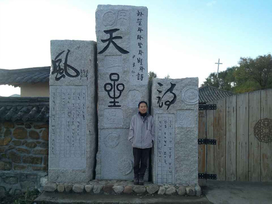 그런데 나는 이 글을 쓰면서 인터넷 자료를 뒤지다가 새로운 사실을 알게 되었다. 윤동주 생가는 조부에 의해 처음 복원되었는데, 2012년 중국 정부에 의해 대대적인 복원공사가 다시 진행되어 현재의 모습을 갖게 된 것이다. 그 과정에서 집들은 본래 있던 그대로였으나 대 곳곳에 새로 시비가 세워졌다. 그렇게 해서 윤동주의 시들이 중국어로 번역되어 돌에 새겨져 여기저기 놓여졌다. 생가 입구 정면에 ‘중국조선족 애국시인 윤동주 생가’라고 새긴 큰 돌도 이때 만들어졌다. 이건 확실히 중국의 의도적인 행위가 들어간 것이라고 생각된다.