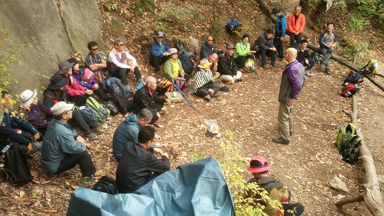 10월 정기산행이 있는 19일, 이른 아침부터 부산했다. 이번 산행부터는 꼭 9시에 등반을 시작하자고 산악회 회원들이 결의를 다졌던 터라 아침부터 도시락에 준비에 시간을 맞추려니 적잖이 몸도 마음도 바빴다.