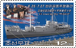 한편 푸에블로호가 전시되고 있는 그 대동강 수면 아래에는 또 다른 미국배가 수장되어 있다. 1866년 미국의 제너럴셔먼호가 대동강으로 거슬러 올라가 평양에서 통상을 요구하며 횡포를 부리자 평양사람들이 그 배를 불 지르고 수장시킨 것이다. 이처럼 대동강수면 위아래로 모두 미군의 배가 존재하니 미국으로서는 북에 대하여 최고의 반미교양물을 제공한 꼴이 되고 만 셈이다. 2008년에는 푸에블로호 사진과 체포된 미군 사진으로 우표까지 발행하였을 만큼 이는 북에게 최고의 반미교양물이 되고 있다.