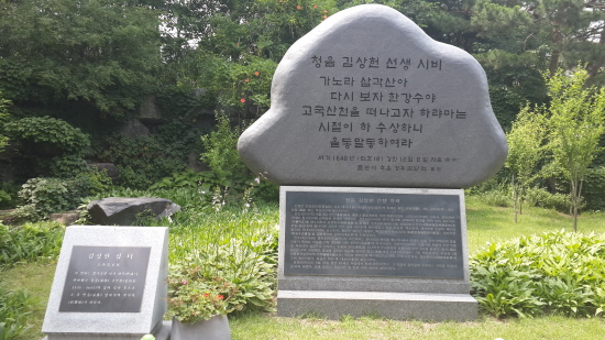이곳에 ‘궁정도 안가’가 들어서기 훨씬 전 병자호란 시기 조선의 충신 ‘청음 김상헌’의 집이 이곳에 있었다는 것이다. 김상헌은 병자호란 때 청나라와 화의를 맺고자 하는 조정의 방침에 끝까지 반대하며 척화론을 주장한 삼학사가운데 한 명이다. 결국 그는 청나라로 끌려갔는데 그가 조국 산천을 떠나며 읊었다는 유명한 시조가 바로 이곳 시비에 새겨져 있으니 그 시조를 여기 남기고 이 자리를 떠날까 한다.