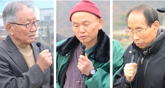 ▲ 추도사를 하는 박중기 추모연대 명예의장과 남민전 관련자인 최석진 선생, 권오헌 양심수후원회 명예회장(왼쪽부터). [사진 - 통일뉴스 류경완 통신원]