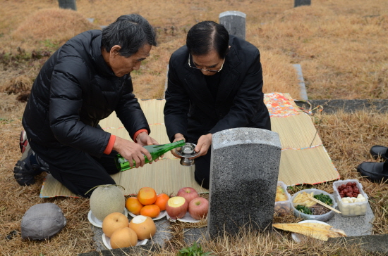 ▲ 가족대표로 잔을 올리는 선생의 남민전 동지이자 큰조카. [사진 - 통일뉴스 류경완 통신원]
