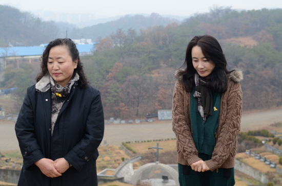 ▲ 69년 ‘남조선해방전략당’ 조작사건으로 사형 당하고 올해 5월 16일 재심 무죄 선고로 복권된 권재혁 선생의 따님 권재희 씨(오른쪽)와 같은 사건 유족 이단아 씨. [사진 - 통일뉴스 류경완 통신원]