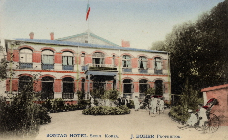 그런데 이들이 주로 만나며 활동무대가 되어 준 곳이 바로 앙투아네트 손탁(Antoinette Sontag)의 사저였다. 정동구락부의 마돈나 역할을 한 손탁은 프랑스계 독일인으로 초대 러시아공사 베베르의 처형이다. 1885년 32세의 나이에 조선에 들어와 1909년 돌아갈 때까지 25년간 이곳에 머물며 사교계의 꽃으로 활약한 인물이다.