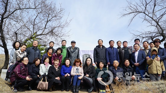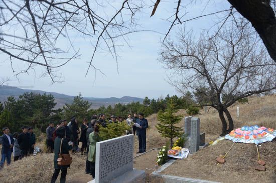 윤동주 묘소를 찾은 용정시 문인들은 윤동주 시인의 넋을 기르며 시낭송도 진행했다.