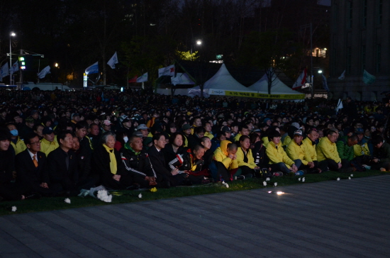▲ ‘4월16일의약속국민연대’(4.16연대)가 세월호 참사 1주기를 맞아 16일 오후 서울광장에서 5만여 명(주최측 추산)의 시민들이 참가한 가운데 ‘세월호 참사 1년 ‘범국민 추모제’ 및 시행령 폐기·인양 촉구 행동전’을 개최했다. [사진 - 통일뉴스 류경완 통신원]
