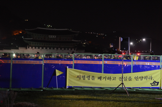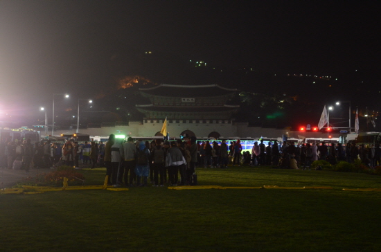 ▲ 새벽3시 광화문광장. 억울하고 분한 시민들이 자리를 뜨지 못했다. [사진 - 통일뉴스 류경완 통신원]