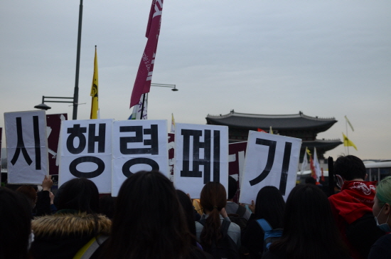 ▲ (19:06) “시행령 폐기” 구호가 광장을 채운다. [사진 - 통일뉴스 류경완 통신원]