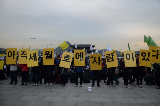 참사에 대한 최종책임이 자신에게 있다던 박근혜 대통령은 참사 1주기에 해외순방을 떠났다. 유가족의 여한이 없게 하겠다던 그 약속은 온데간데 없이 가족들은 길 위에서 컵라면과 비닐 한 장에 의지한 채 밤샘농성을 이어갔다.