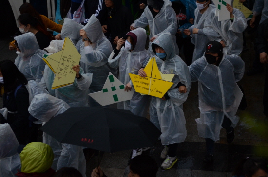 ▲ (15:48) 노란 종이배를 든 시민. [사진 - 통일뉴스 류경완 통신원]
