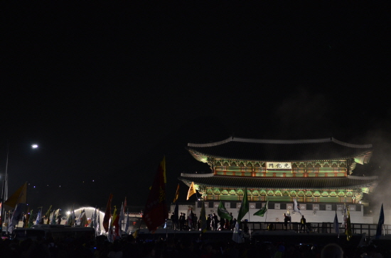 ▲ (19:02) 본대를 맞는 학생들의 퍼포먼스. [사진 - 통일뉴스 류경완 통신원]