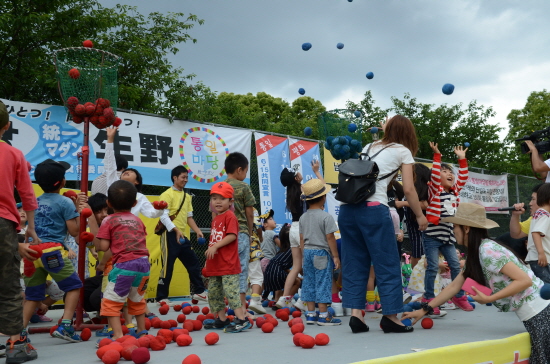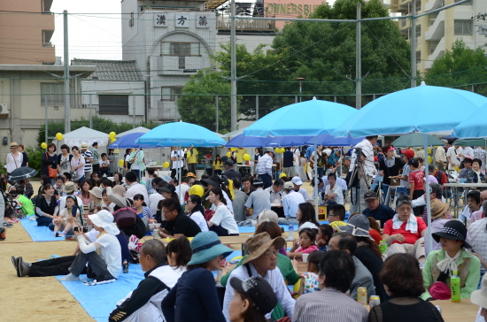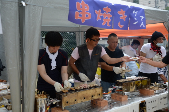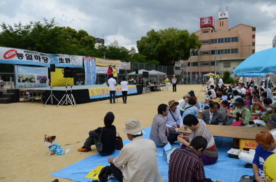 ▲ 이쿠노공원 공연장 마당을 둘러싼 음식 매대들. [사진 - 통일뉴스 류경완 통신원]