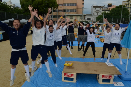 ▲ 공연을 마친 대판조선고급학교와 동대판조선중급학교 취주악부 학생들이 단원들과 어울려 흥겹게 어깨동무를 하고 있다. [사진 - 통일뉴스 류경완 통신원]