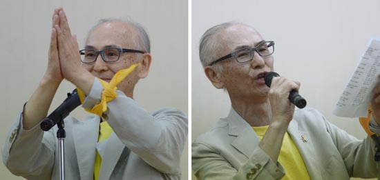 ▲ 전날 통일토론회 전야제에서 “615합창단에 힘 있고 아름다운 공연을 기대한다. 도쿄와 오사카, 고베처럼 서울과 판문점에서도 통일마당을 만들자. 통일의 씨앗을 함께 뿌리고 꽃을 피우자. 오사카와 도쿄에도 615합창단을 만들겠다”고 역설해 뜨거운 박수를 받은 손계영 통일마당이쿠노 부실행위원장. [사진 - 통일뉴스 류경완 통신원]