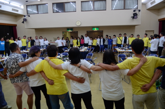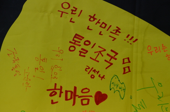 ▲ 행사가 모두 끝나고 마당을 둘러싼 참가자들이 손에 손을 잡고 ‘우리의 소원은 통일’을 부르고 있다. [사진 - 통일뉴스 류경완 통신원]