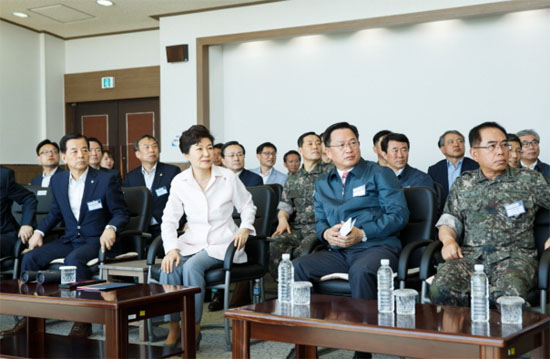 ▲ OSJD 한국 가입 투표 전날인 지난 3일, 박근혜 대통령이 국방과학연구소(ADD) 안흥시험장에서 사거리 500㎞ 이상의 탄도미사일(현무-2B)의 발사모습을 관람하고 있다. [사진 출처 - 청와대 홈페이지]