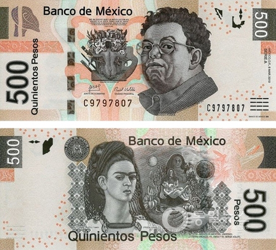 그런데 프리다 칼로를 보면서 이런 생각이 들었다. 멕시코는 마초의 나라인가? 아니면 여성성의 나라인가? 그림으로만 평가한다면 프리다 칼로는 분명 남편 디에고 리베라와 비교하기 힘들 것이다. 하지만 한 인간의 삶의 여정, 열정이라는 측면으로 본다면 리베라에 뒤지지 않을 것이다. 그래서 그런가? 오늘날 그녀는 (디에고 리베라와 함께) 500페소짜리 멕시코 화폐의 주인공이 되어 있다. 그녀는 모든 문화 상품에 얼굴을 내밀고 있다. 옷, 장식품, 기념품 등등 없는 곳이 없다. 그녀는 일반 멕시코인들에게 가장 친숙한 인물이다.