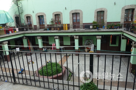얼마간을 그렇게 길거리에서 전전긍긍하고 있는데, 젊은 멕시칸 친구가 헐레벌떡 달려온다. 아마도 주인의 연락을 받은 관리인인 모양이다. 그가 뭐라고 말하지만 알아들을 수가 없다. 손짓, 몸짓과 짧은 영어로 가까스로 의사가 통했다. ‘이 집에 묵을 사람들이냐?’ ‘그렇다’라고. 그가 문을 열고 우리는 짐을 들고 따라 들어갔다. 1층을 지나 2층을 지나 3층이다. 아, 왜 이렇게 계단 올라가기가 힘들지? 오랜 비행 끝이어서 피곤해서 그런가? 갑자기 멕시코시티가 2천 미터가 넘는 고지에 위치하고 있다는 것, 그래서 높은 곳을 조금만 올라가도 숨이 차다는 이야기를 어디선가 읽은 기억이 떠오른다.