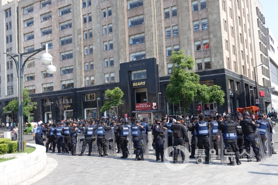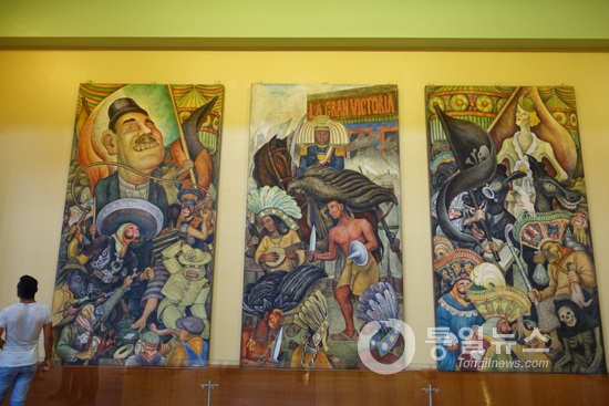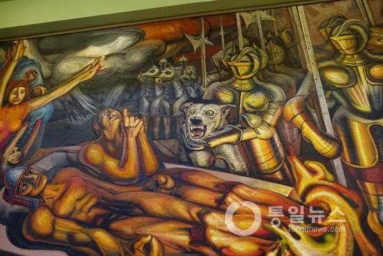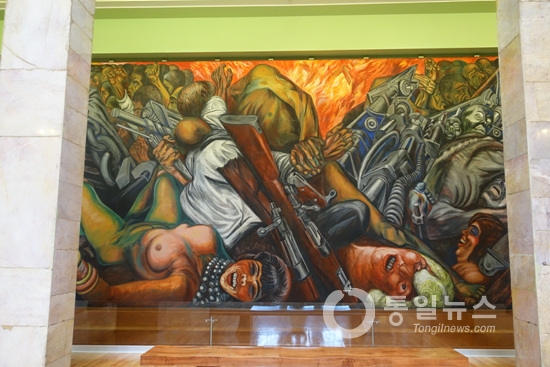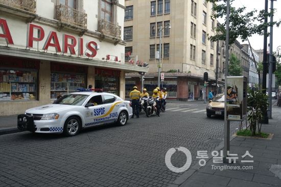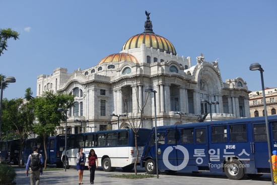 우리는 시내를 걷는 동안 길거리 곳곳에서 중무장한 경찰들과 만났다. 마치 서울 거리의 전경들과 그들의 차량을 보는 기분이 들 지경이다. 처음 우리는 중무장한 경찰들이 마약 범죄자들과 범죄와의 전쟁을 치르고 있는 것이라고 생각했다. 멕시코에서는 마약범죄조직이 치안을 심각하게 위협하고 있는 게 현실이니까. 한국에 돌아오고 얼마 뒤 멕시코 최고의 마약왕 구스만이 감옥을 탈옥했다는 보도가 나왔을 지경이니 말해 무엇하겠는가. 그는 상상을 초월하는 방법으로 탈출했다. 쇼생크 탈출은 저리가라다.