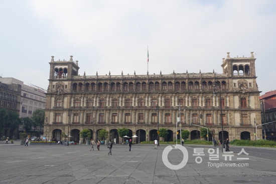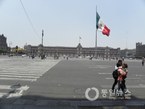 한 시간 가량 달려 원장님이 묵고 있는 숙소 앞에 도착했다. 숙소는 멕시코시티 구시가 중심에 위치한 약간 낡은 가정집 2층이었다. 우리는 도착 뒤 과일(망고)과 빵, 물로 허기를 간단히 채웠다. 망고 맛이 일품이었다. 비로소 멕시코에 온 느낌이 들었다. 교수님은 침대에서 쉬도록 했다. 우리는 집에 가까운 곳에 위치한 소깔로 광장 주변을 구경했다. 소깔로 광장은 구도심의 중심지이며 출발점이다. 광장 주변에는 대성당과 대통령궁, 시청사, 행정부처들 등의 관공서를 비롯하여 국립궁전, 템플로 마요르 등 볼거리들이 즐비한 곳이다. 하지만 지금은 시간이 없으니 그냥 휙 돌아보는 것으로 끝내야 했다. 사진도 몇 장 찍고, 주변 가게들도 돌아보면서.