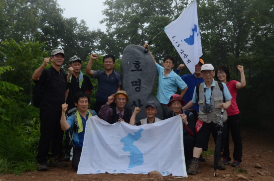 땀으로 범벅이 되어 하늘인지 땅인지 어질어질 방향을 잃은 나에게 조금만 올라가면 시원한 청평댐이 보인다며 수건 한 쪽 끝을 잡고 오르라고 손을 내밀어 준 총무, 조금만 힘내면 정상이고 평탄한 능선이라며 격려해 주시는 일행들 덕분에, 드디어 쓰러질 것 같았던 나는 632m의 호명산 정상에 도착했다.