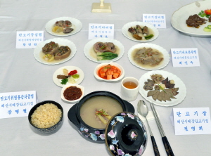 국물은 소금과 간장으로 간을 맞추어 따끈하게 덥힙니다. 단고기국은 지방에 따라 맛이 특색 있었는데 함경도 지방에서는 단고기국에 소금을, 평안도 지방에서는 된장을 썼습니다.