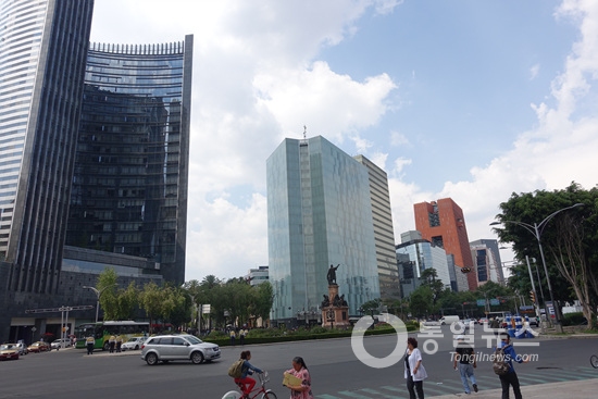 멕시코시티 다운타운 지역을 지나면서도 서울처럼 현대식 초고층 빌딩 숲이 크게 발달했다는 느낌은 들지 않았다. 어쩌면 이것은 멕시코에 지진과 화산이 많다는 점과도 관계가 있을는지도 모르겠다. 미국 서부의 최대도시인 로스앤젤레스(LA)의 경우도 지진 때문에 가급적 초고층 빌딩 건축은 자제하고 있다는 데 멕시코시티도 비슷하지 않을까 싶다. 1985년 9월 19일 멕시코시티에 진도 8.1의 강진이 발생하면서 도시가 대거 파괴되고 1만 명 이상의 사망자가 발생한 일이 있었다.