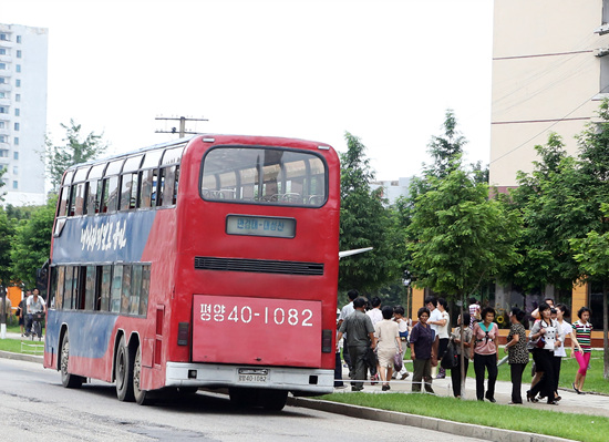 ▲ 평양거리의 이층버스. [사진제공-김대중평화센터]