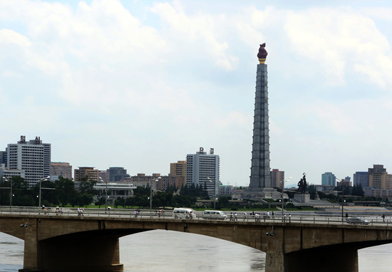 ▲ 대동강가에 서 있는 주체사상탑. [사진제공-김대중평화센터]