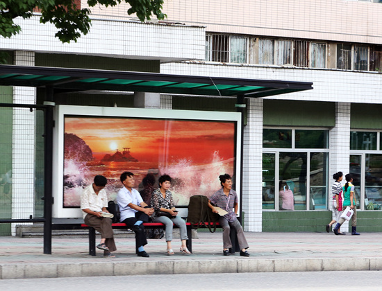 ▲ 버스를 기다리고 있는 평양시민들. [사진제공-김대중평화센터]