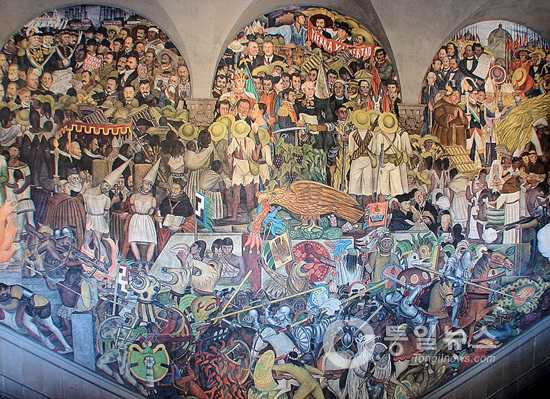 그러나 어쩌랴! 이미 끝난 일이니. 혹 다음에 멕시코에 가는 분들은 이런 실수 하지 마시기를. 사실 우리는 이것만이 아니라 멕시코에서 봐야 할 다른 것들도 몇 가지 놓쳤다. 소깔로 광장 주변에 위치한 대통령궁(국립궁전)과 ‘템플로 마요르’(‘위대한 신전’이란 뜻을 지닌 유적지)를 보지 못한 것도 그 중 하나. 국립궁전에는 멕시코의 장대한 역사를 그린 디에고 리베라의 역작, 벽화가 사람들을 기다리고 있다. 그곳까지 가서 그걸 못 보다니….