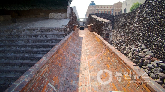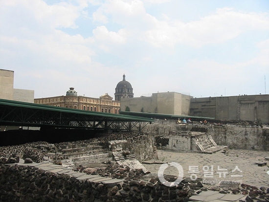 또 템플로 마요르는 14~15세기 테노치티틀란(멕시코시티)에서 중심 역할을 하던 신전의 흔적이 있는 곳. 스페인 정복자들은 전쟁과 태양의 신, 비와 다산의 신을 모시는 2개의 신전이 있던 자리를 파괴하고 그 신전의 돌로 자신의 건물을 지었다. 지금의 도시 지하에 묻혀 있던 신전의 하단 부분만 겨우 발굴된 상태라고 한다. 스페인 침략자들은 테노치티틀란의 중심 신전을 파괴하고, 호수를 메운 다음 그 위에 지금의 소깔로 광장을 중심으로 멕시코시티를 건설하기 시작했던 것.