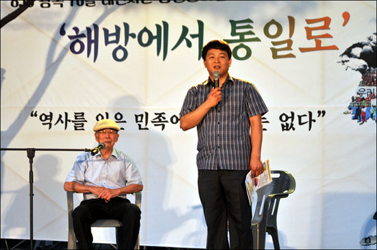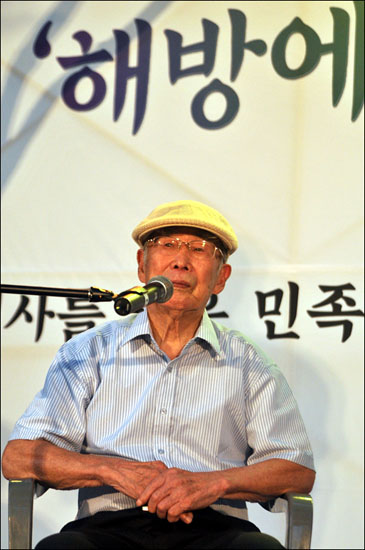 무대에 오른 일본 강제징용 피해자 김한수 할아버지(97세, 대덕구 와동 거주)의 첫 목소리다. 100세를 앞둔 분의 목소리라고는 믿어지지 않을 만큼 우렁차고, 정정했다.