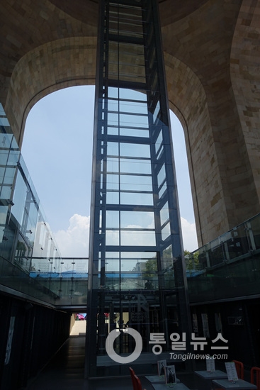 식사 후 혁명기념관 내부 구경에 나섰다. 농성하는 사람들 때문에 입구를 찾는데 한참을 헤맸다. 가까스로 입구를 찾아서 들어갈 수 있었다. 붉은 기운이 약간 비치는 황색 돔으로 되어 있는 건축물의 지하에는 혁명기념관이, 위에는 시내를 바라볼 수 있는 전망대가 있었다. 전망대는 고속 엘리베이터를 타고 올라가야 했다. 우리는 당연히 지하의 혁명기념관을 선택했다.