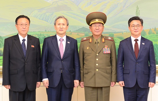 남측은 김관진.홍용표-황병서.김양건이라는 2+2회담으로 수용했고 장소도 남측의 ‘평화의 집’을 관철시켰지만 결국 북측의 정치적 협상 제안을 수용한 셈이다. 북측은 협상에서 집요하게 확성기 방송 중단을 관철시켰고, 남측은 ‘비정상적인 사태가 발생하지 않는 한’이라는 단서를 달아 합의해줬다. 결국 북한은 ‘동시에’라는 단서를 달아 준전시 상태 해제를 선언했다. 공동보도문 4항에 북측이 굳이 ‘동시에’라는 표현을 꼭 집어넣어 강조한 이유가 바로 이같은 맥락에서다.