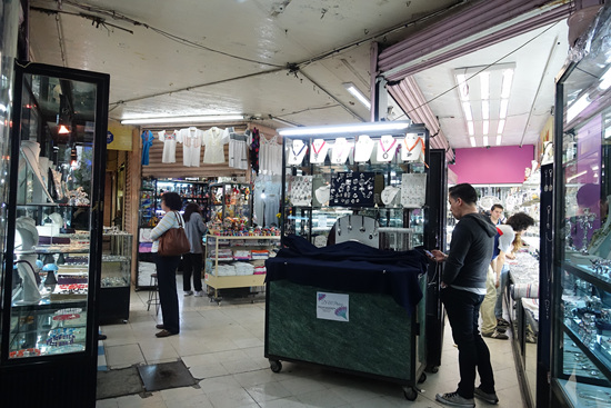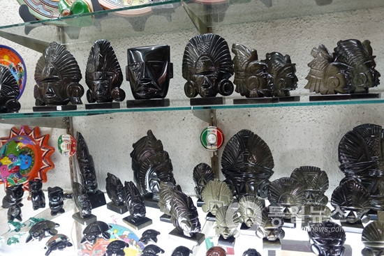 기념품 가게가 있는 시장에 가까워질 무렵, 갑자기 비가 내렸다. 비도 피할 겸 기념품도 살 겸 우리는 한동안 그곳에 머물렀다. 은세공품, 돌세공품, 전통문양의 천 등 다양한 기념품이 우리를 기다리고 있다. 기념품은 주로 100페소(8천원)에서 150페소(1만2천원) 내외가 주종을 이루었다. 우리들은 몇 가지 기념품을 골랐다.