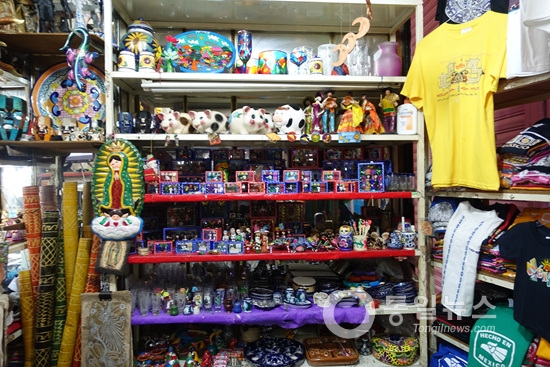 우리는 리베라 박물관을 나와 기념품 상점이 모여 있는 전통시장으로 걸어서 이동했다. 테오티우아칸 유적지에 함께 갔던 홍 목사님을 박물관에서 만나 그의 안내를 받았다. 길거리를 걷는데 멕시코의 뜨거운 햇살이 머리에 내려 쪼인다. 차들이 내품는 매연으로 숨이 막힐 지경이다. 아직 아스팔트의 열기가 심하게 느껴질 정도는 아니지만 더운 날씨에 몸이 지친다. 힘들다는 생각이 들었다.